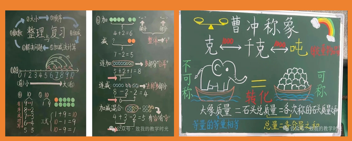 其中,最让我值得期待的是管老师的讲座,虽然没能亲自到场授课,但是也不影响我的期待值。我曾多次聆听管老师的分享,但每次都有新感悟、新收获。本次讲座中,管老师不仅为我们系统解读了“以学为主”的小学数学课堂构建路径,还让我透彻理解了这一教学理念的核心要义——课堂的主角始终是学生,要把学习的主动权真正交给孩子,关注他们真实的学习体验,而非单纯传授知识、追赶教学进度。讲座中管老师再次向我们分享了“无箭头不板书”的教学技巧,这一实用方法。从在他的第一次讲座中听到之后,在每一节课的板书设计环节中,我都尽量尝试着去思考板书的设计。板书设计就是一个微型课堂,所以课堂板书的设计要贴合学生的学习逻辑,以简洁、清晰、符合学生认知的方式,为学生的学习搭建支架,让板书成为助力学生理解知识、梳理思路的有效工具。