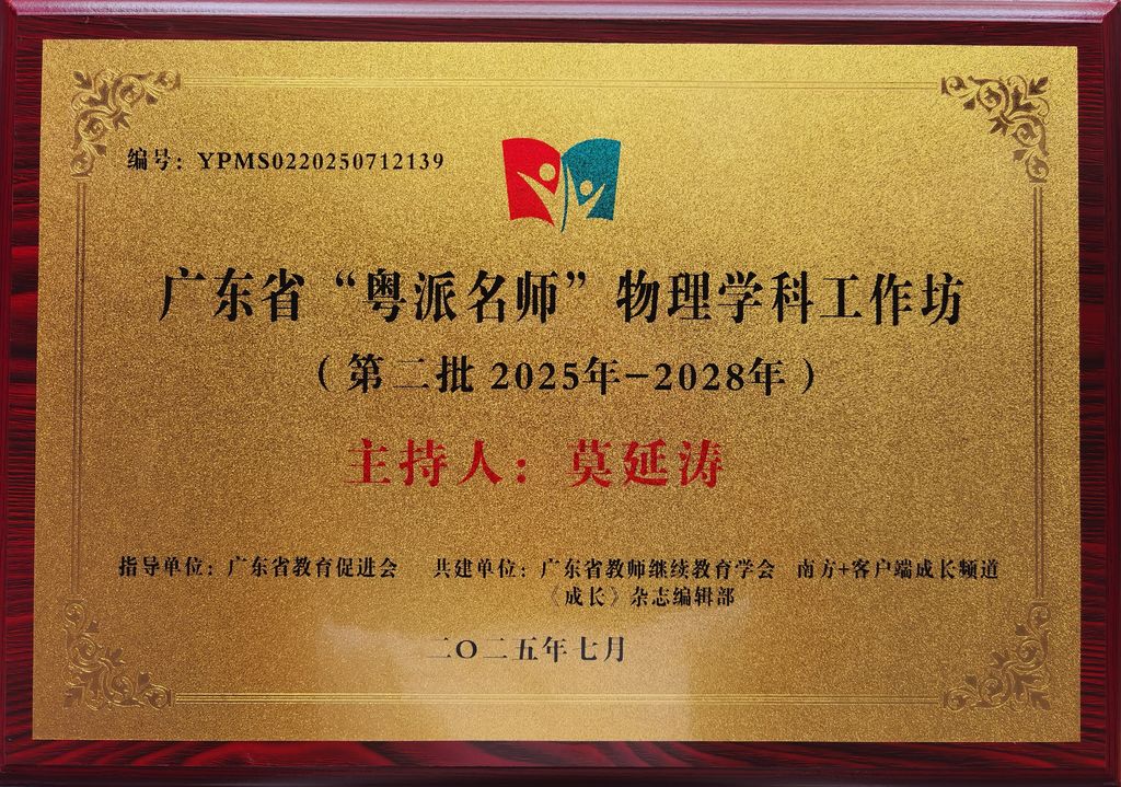 [简介] 广东省“粤派名师”莫延涛物理学科工作坊,成立于2025年7月,是在省级教师发展工程(广东省教师继续教育学会)指导下组建的高水平教学研究与实践共同体。工作坊由业绩突出的莫延涛主持,并特邀正高级教师、省名教师工作室主持人谭振......