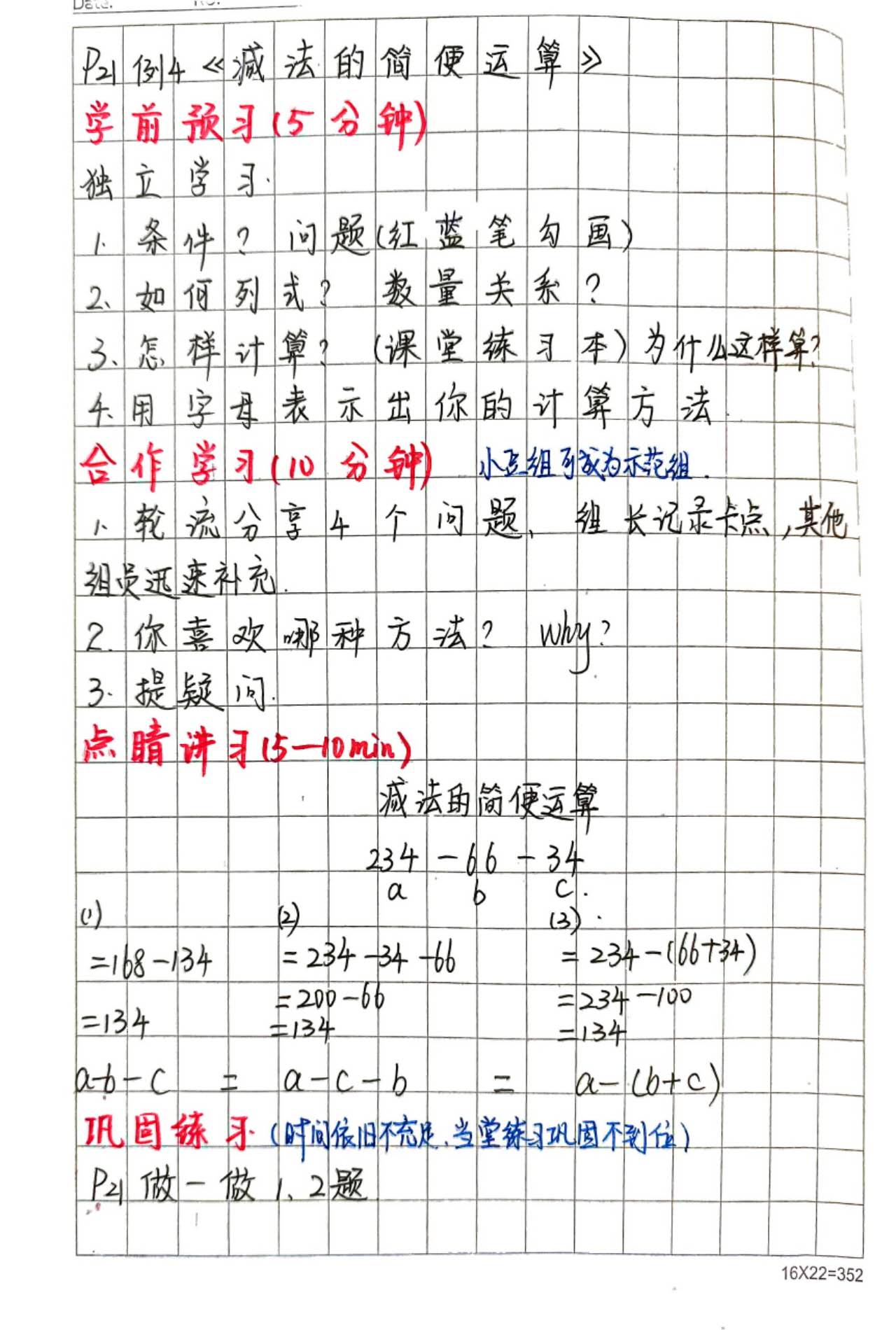 1. 还课堂于学生:在本次研修之前,通过公众号的学习,我已经在初步尝试“四习”法,收效甚好,老师教得轻松,孩子们反响不错。但实施了两次新课及四次练习课之后,暴露出了一些问题,例如每个小组长领导能力各不相同,导致小组合作学习环节快慢不一,又或者潜能生参与度整体不够高。通过本次研修,让我想到了解决策略。我继续研究岑老师的“四习”法及定期研读《双妙˙数学教学主张》,备足课,梳理每课所学内容的学习要点及设计1-2个核心思维问题,每节课预留5分钟让孩子独立学习,10分钟小组合作时间,引导学生敢表达、善思考、会质疑。